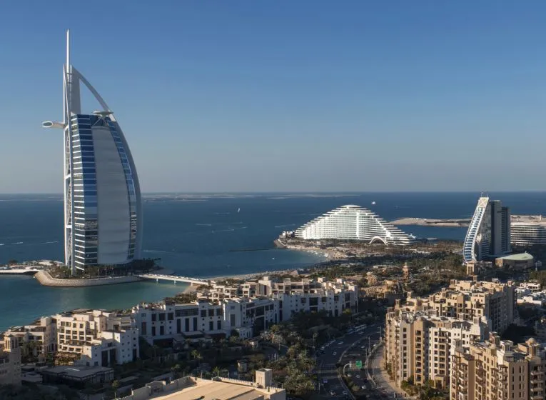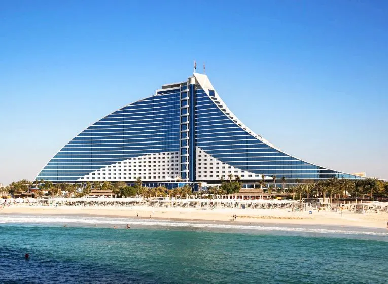 أحد معالم دبي الفريدة، وأفخم فندق في العالم بأجنحته الفاخرة، يقف شامخاً فوق شاطئ البحر الفيروزي، مُطلاً بفخر على المناظر الخلابة لإمارة دبي. تُثير صورة برج العرب، الشبيهة بالشراع، شعوراً بالرهبة والإعجاب، وتُضفي الأضواء المتلألئة والملونة عليه لمسة ساحرة في الليل. يُعد هذا الصرح من أروع الوجهات بالنسبة المقيمين والزوار على حدٍ سواء.